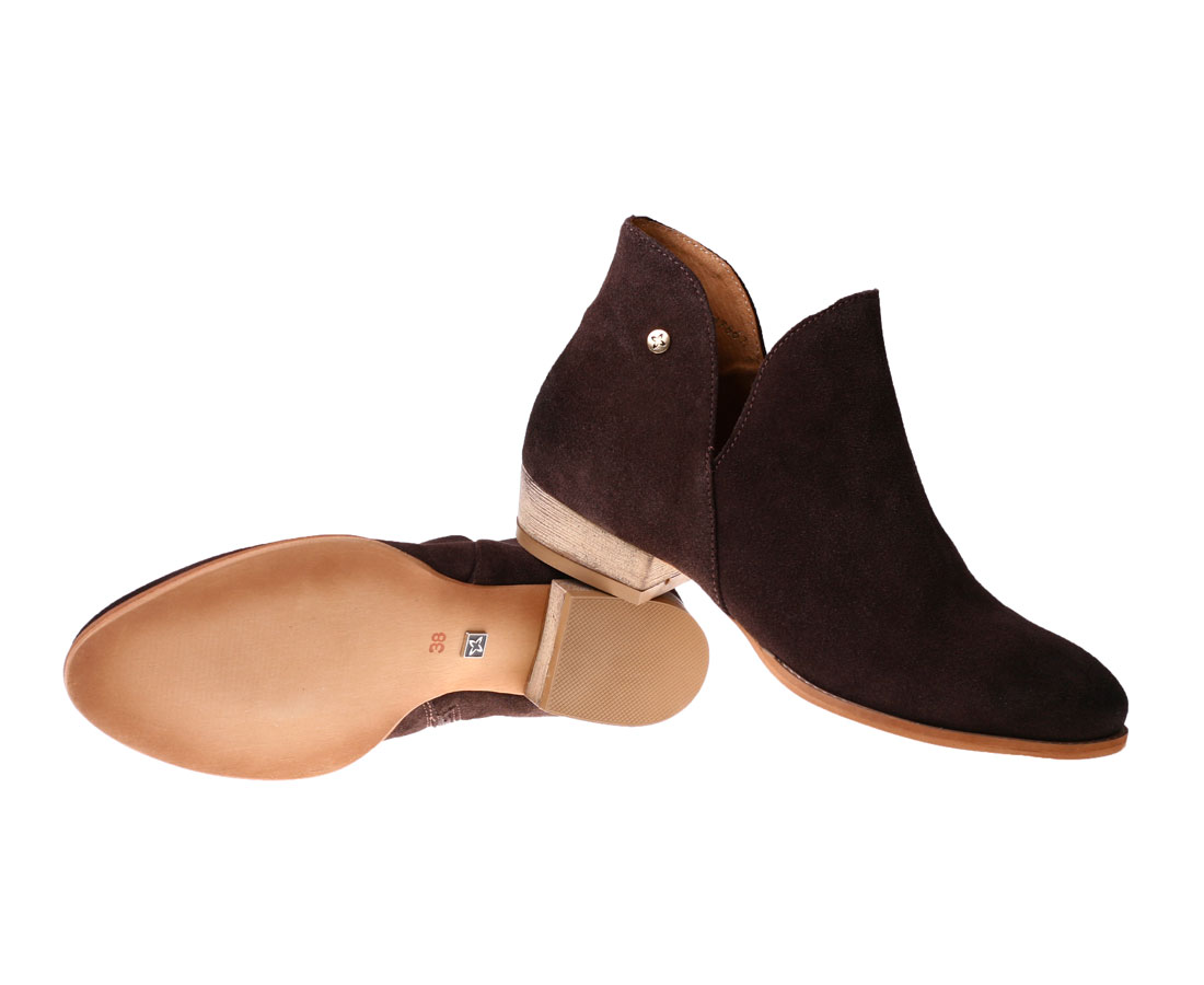 Botki damskie Maciejka na niskim obcasie czekoladowy brąz 04091-79/00-5