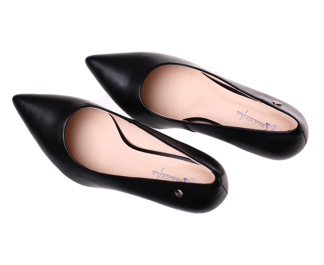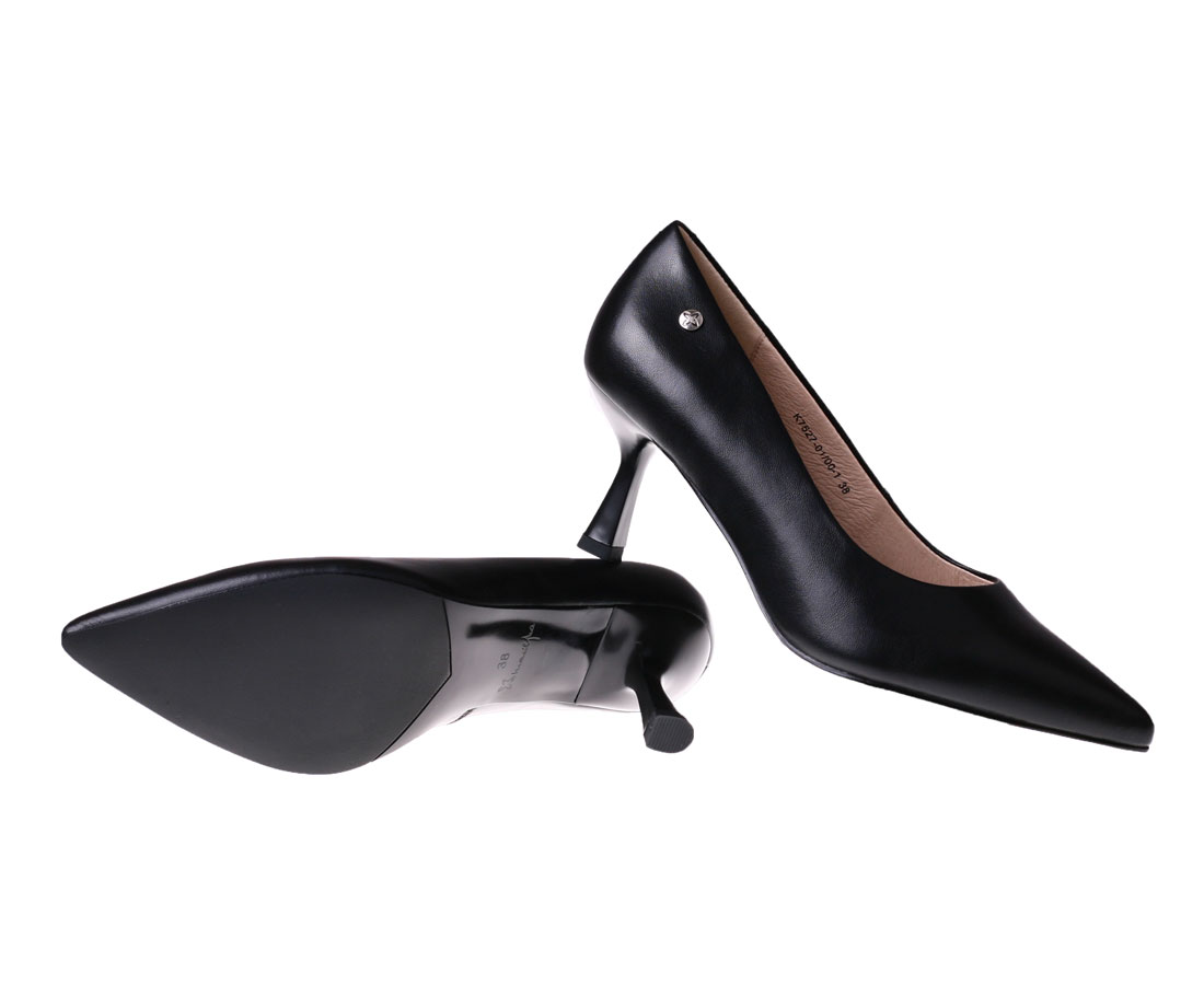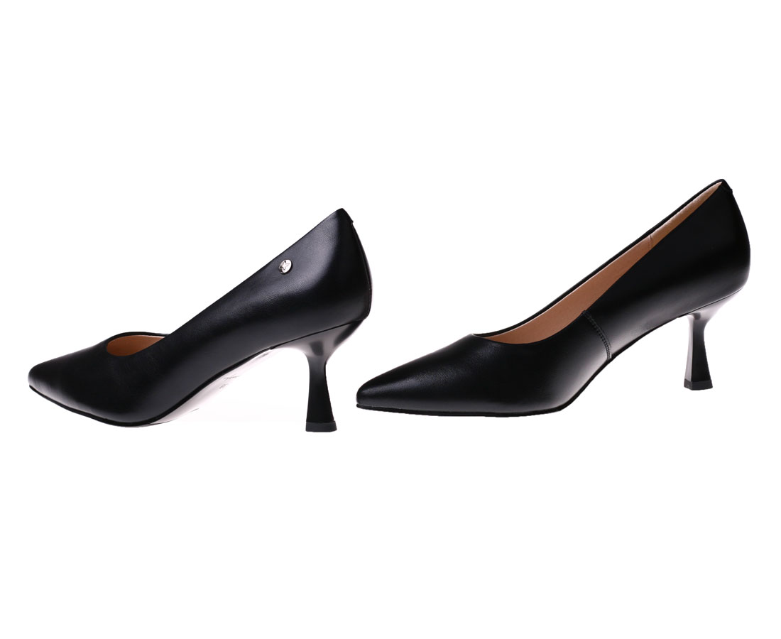 Głęboka, szlachetna czerń naturalnej skóry licowej nadaje butom wyrafinowanego charakteru i sprawia, że z łatwością dopasują się do każdej stylizacji. Szpiczasty nosek subtelnie wysmukla sylwetkę, dodając lekkości i elegancji, która nigdy nie wychodzi z mody.
